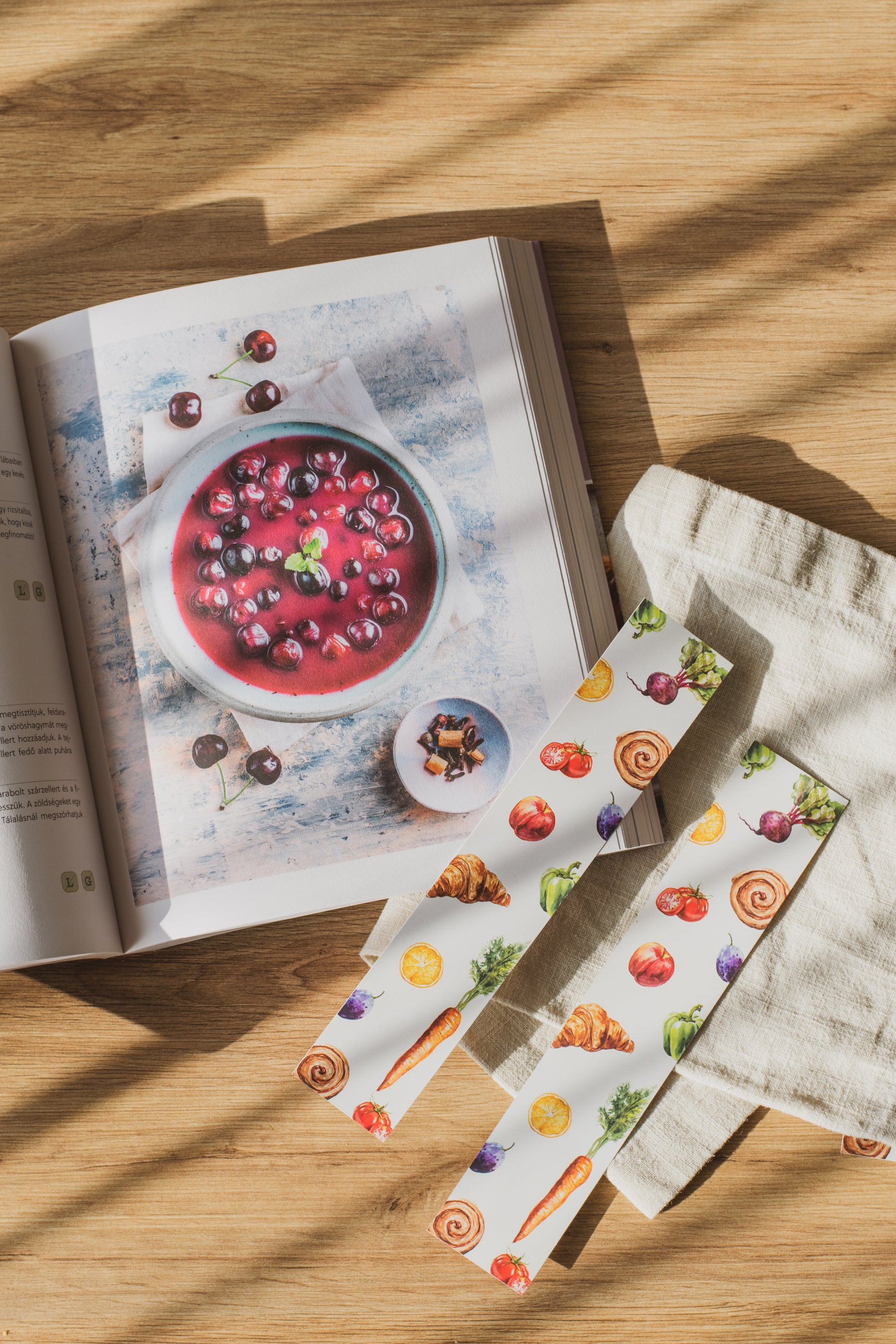 Ez a vidám, akvarellmintás könyvjelző kifejezetten a „Szénhidrátdiéta a gyakorlatban” szakácskönyvhöz készült – hogy mindig gyorsan megtaláld a kedvenc IR-barát receptjeidet.