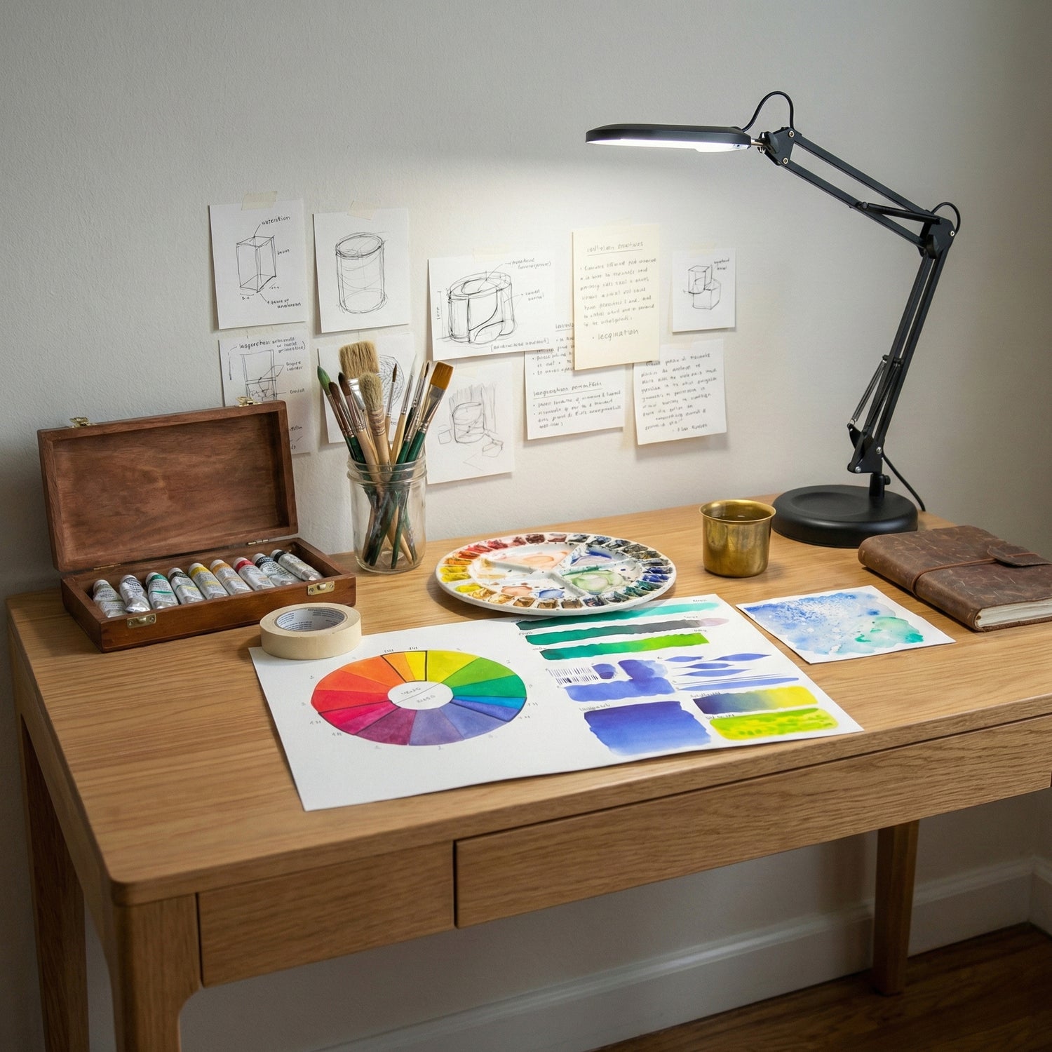 A víz és festék aránya (tejes, tejszínes állag). Hogyan keverjünk színeket (ne legyen "sáros" a végeredmény). Emellett bevezetlek a színelmélet alapjaiba, hogy a lelki szemeid előtt lebegő színeket tudd létrehozni a papíron is.