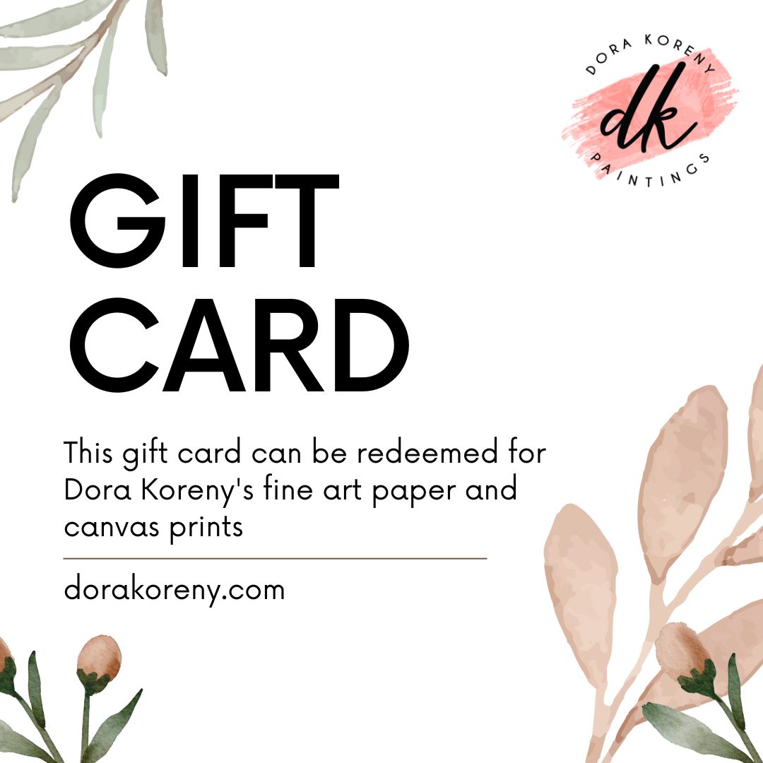 Ajándékozz egyedi alkotást vagy élményt a művészet szerelmeseinek! Ez az ajándékkártya lehetővé teszi számukra, hogy maguk válasszák ki a számukra legmegfelelőbb művet, ami az otthonuk vagy irodájuk éke lehet vagy a kedvenc akvarell workshopjukat.
