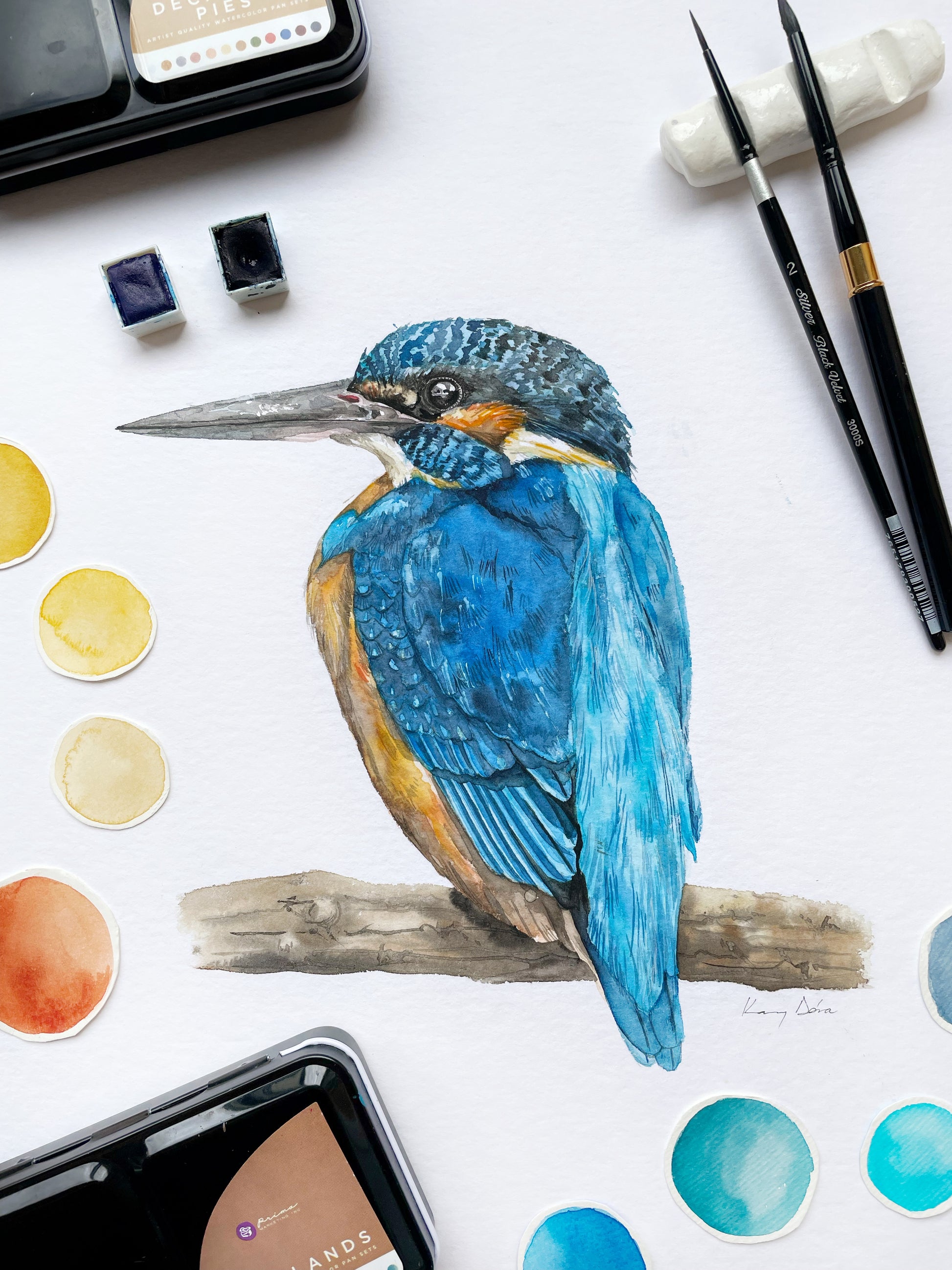 A festmény kiváló minőségű, 300g/m2 súlyú akvarellpapírra készült, professzionális akvarellfestékekkel. Ez a kombináció biztosítja az élénk színek tartósságát és a részletek gazdagságát.