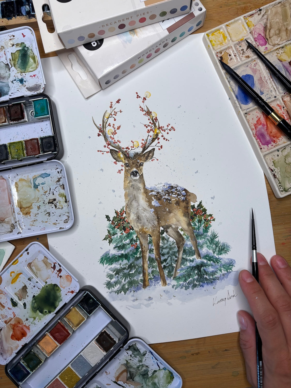A festmény kiváló minőségű, 300g/m2 súlyú akvarellpapírra készült, professzionális akvarellfestékekkel. Ez a kombináció biztosítja az élénk színek tartósságát és a részletek gazdagságát.